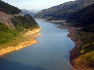 in dieser geologisch aktiven Zone. Der Stausee bei Siriu -